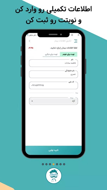 - ثبت شرح مختصری از بیماری قبل از گرفتن نوبت
