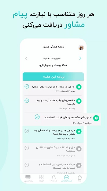 بعد از وارد کردن اطلاعات کودکتان این اپلیکیشن به صورت روزانه یک پیام تربیتی برای شما ارسال می کند