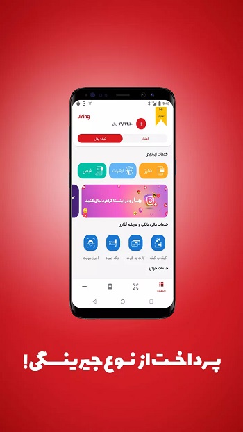 همچنین در این اپ میتوانید پرداختهای خود را به صورت کاملا امن با استفاده از کیف پول جیرینگ انجام دهید!