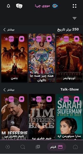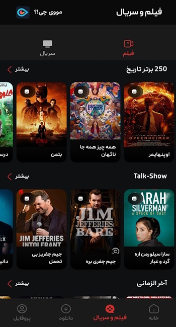 اپلیکیشن Moviechi پلتفرمی با دسته بندی عالی و آرشیو نسبتا کامل و بروزی می باشد.