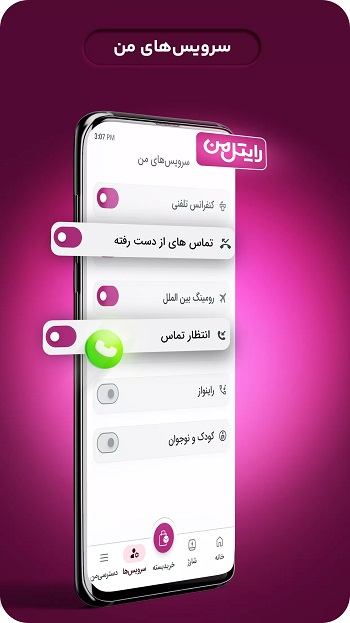 در بخش سرویسهای من میتوانید به تعدادی از سرویسهای مختلف سیمکارتهای رایتل نظیر رومینگ بینالملل،
