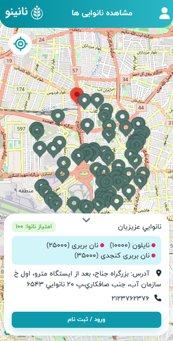 نمایش موقیعت مکانی نانوایی های اطراف محل سکونت یا کار
