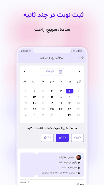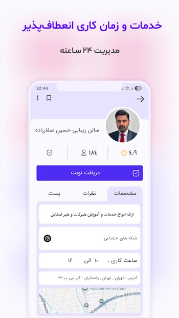 نوبتها را مدیریت کرده و نمونه کارهایشان را نمایش دهند و امکان پرداخت آنلاین هنگام رزرو، اطمینان خاطر را برای هر دو طرف افزایش میدهد.