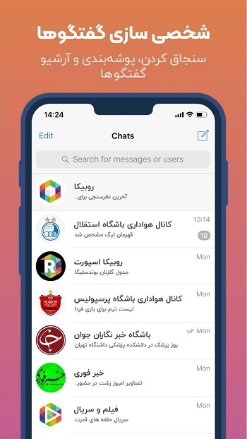 امکان عضویت در کانالهای متعدد و رسمی خبری، هنری، ورزشی، فرهنگی، سیاسی و …