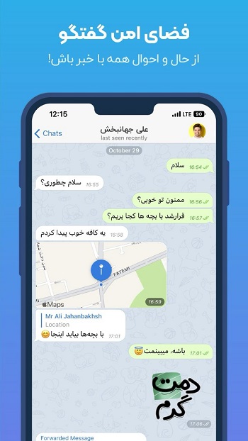 نسخه اپلیکیشن روبیکا مختص گوشیهای آیفون و آیپد برنامه کاربردی انجام چت و تماس تصویری و صوتی ارسال موقعیت مکانی آنلاین و تماشای فیلم و غیره