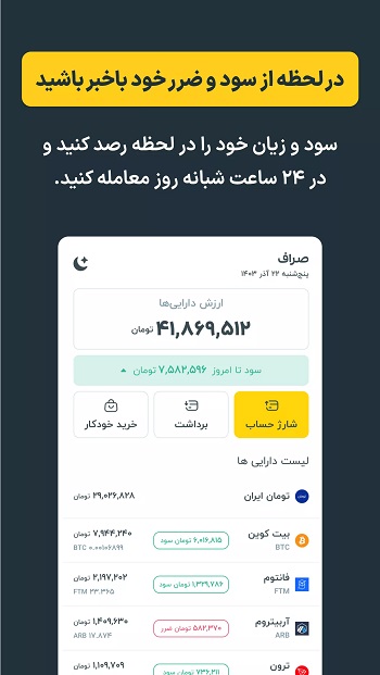 با Saraf، میتوانید در هر لحظه از شبانهروز، بدون هیچگونه معطلی، سرمایهگذاری انجام دهید و داراییهای خود را در امنیت کامل نگهداری کنید.
