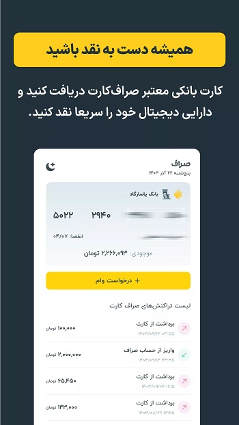 • کارت بانکی saraf: کارت بانکی شتابی saraf را دریافت کنید و در لحظه به داراییهای خود دسترسی داشته باشید.