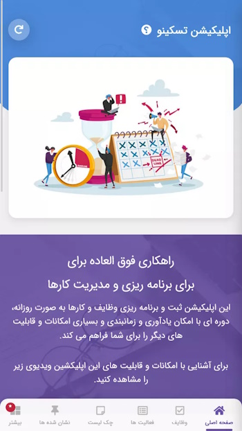تسکینو، اپلیکیشن برنامه ریزی و مدیریت وظایف، این اپلیکیشن در سیستم عامل ios قابل استفاده می باشد.