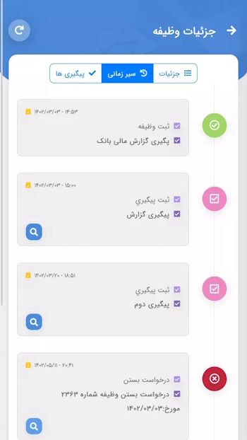 برای اعضای تیم خود نیز امکان ارجاع وظیفه به همراه ثبت پیگیری کارها وجود دارد. تا به راحتی پیشرفت کارها را مدیریت کنید.