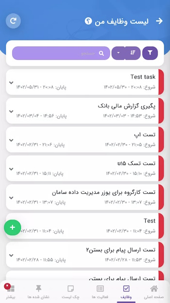 در اپلیکیشن وظایف برای انجام وظایف و کارها در زمان مشخص شده برای شما اس ام اس و ایمیل ارسال خواهد شد