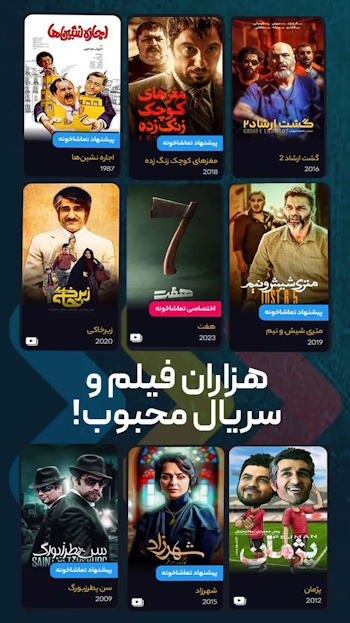 نسخه وب اپلیکیشن تماشاخونه برای گوشی های آیفون و آیپد برنامه کاربردی تماشای فیلم، سریال و انیمیشنهای ایرانی و خارجی روز دنیا با زیرنویس و دوبله فارسی